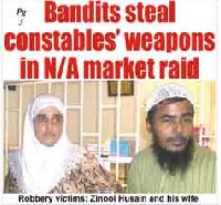 Bandits escaped with an undisclosed sum of valuables and three firearms after breaking into seven New Amsterdam Market stalls and the town's Constabulary office at around 03:00hrs yesterday. The bandits locked three unarmed market constables in an old stall after raiding Danzie's Fashion, Busgith Haberdashery Store, Hack and Ken Stall D14, Husain's Jewellery, Ramo and Farria's Jewellery, McLean Jewellery and another establishment. The owners of Hussein's and McLean's said they lost about $800,000 and $125,000 respectively in jewellery. It is believed that the men escaped via the Berbice River, since the guards later said that they heard the sound of a speedboat moving off. Initial reports indicate that five masked men, who all had firearms, entered the market premises from the wharf by the Berbice River. The bandits then subdued the three constables before breaking open the main gate to the market, and forcing open the stalls. Next, the bandits took the hapless constables to the Constabulary Office. They broke into the office, and removed two hand- guns, a shotgun, ammunition and a pair of handcuffs which had been secured in a cupboard. When this was done, the bandits allegedly took the three constables behind the compound where they locked them in an old stall before escaping with their booty.