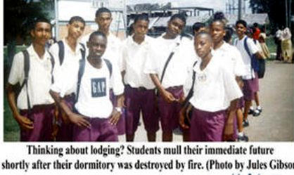 When Stabroek News arrived at the college a tender from Georgetown had just arrived. By this time the building was already consumed, but was still smouldering. In the schoolyard, which is almost covered with thick bushes, the hapless students were scattered all over. Some of them could be seen with their mattresses and suitcases hurrying down the stairs of some of the buildings that were being threatened by the fire. By 12 pm all of the buildings were evacuated. Some students hauled their mattresses into the thick weeds while others looked out for their suitcases and belongings. Simultaneously, parents of some of the students were arriving at the school in droves. Principal Stanley Lewis said he is not certain what sparked the fire, even though admitting that there was an electrical problem at the school the night before. Lewis assured that every effort was being made to make the students comfortable, while at the same time determine the origin of the fire. He disclosed that some 20 sixth formers had completed their School Based Assessments (SBA) and these papers had been burnt. Some of the fifth formers also complained that they lost several important text books and assignments which are critical for the upcoming Caribbean Secondary Education Certificate examinations. President Bharrat Jagdeo, who visited the school, said the government would intervene on their behalf with the Caribbean Examinations Council. Up to late yesterday afternoon the college's administration along with Jagdeo, Minister of Education, Dr Henry Jeffrey and Chief Education Officer, Ed Caesar were working out accommodation for the 103 boys. Among some of the places suggested for temporary occupancy were the Guyana Women Leadership Institute at nearby Cove and John and the Cyril Potter College of Education. Jagdeo also assured the college that an emergency plan would be worked out to have the building rehabilitated.