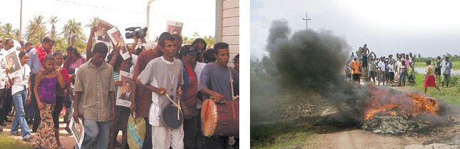 men rape, rob woman Venezuelan bandits Cellophone thieves Male prison Dougla dance troupe Ravi-Boodhoo-shot Ganie_robbed Ramkumarie Bisram and his wife were in their Zeelugt home early yesterday morning when the three bandits, two armed with handguns and the other a knife, attacked. A press release from the Police Public Relations Office said during the robbery one bandit's identity was revealed and he has since been arrested. Death-warrants Hemraj-Harrichand-robbed Guyana-under-Jagdeo Parjohn_cremation Kaneville_family Mohamed Yusuf Mohan Kishore Reports are that the bandits broke into the couple's house through a window. Bisram's wife was the first to be awakened by the noise and upon investigating she was accosted by one of the robbers who held a gun to her head. The two other bandits proceeded to Bisram, beating him and also demanding cash and jewellery.