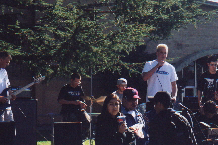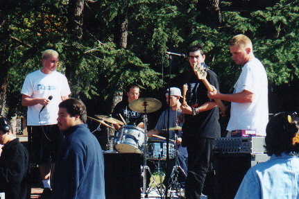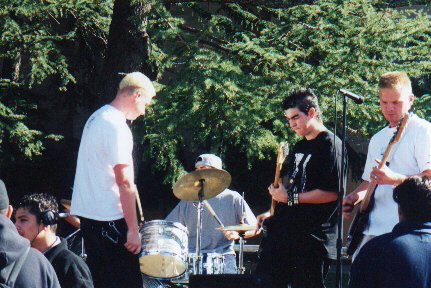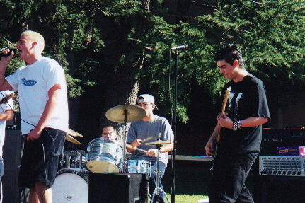 Wow, a sort of on the whim lunchtime gig at Sequoia Highschool, the highschool of all bandmembers (except Brent). Due to its impromptu nature, Brent couldn't make it to the gig, so Alex played bass instead.