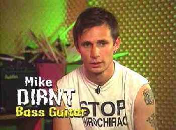 Mike Dirnt, formerly Micheal Pritchard, lived in poverty, born to a heroin-addicted mother and a white father. When Dirnt was seven, his adoptive parents divorced, and Dirnt bounced between the two until finally settling in with his adoptive mom and older sister. That, too, was short lived, and soon Dirnt struck out on his own, working, among a handful of jobs, at Rod's Hickery Pit where Billie Joe's mom was a waitress. Dirnt rented a room on the side of Billie Joe's house at one point. Mike married his girlfriend Anastasia in August of 1996, they now have a daughter named Estelle-Desiree born in April 1997. Mike was born on May 4, 1972. The pressures of being in Green Day have become to much for Mike and Anasasia's marriage to withstand and they are now divorced. Mike says he is still very good friends with her and calls his daughter his "hero". Currentely, Mike is engaged to a girl named Sarah.