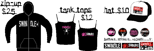 Write to: info@swindle.ca with what SIZE, which ITEM, and what LOGO you want.