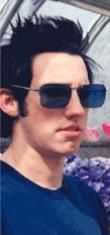 I especially like his spiky black hair (all my friends know that I'm a sucker for spiky black hair) and he's scrawny (all of my friends know that I love scrawny guys) and his big white teeth. He plays guitar (always a plus) and was in a band called Hank, and I can't find anything on them anywhere. And you know that he's cool cuz he hung out with Corey Feldman AND Corey Haim. That is a relative Corey Overload! A Corey Sandwich, if you will.