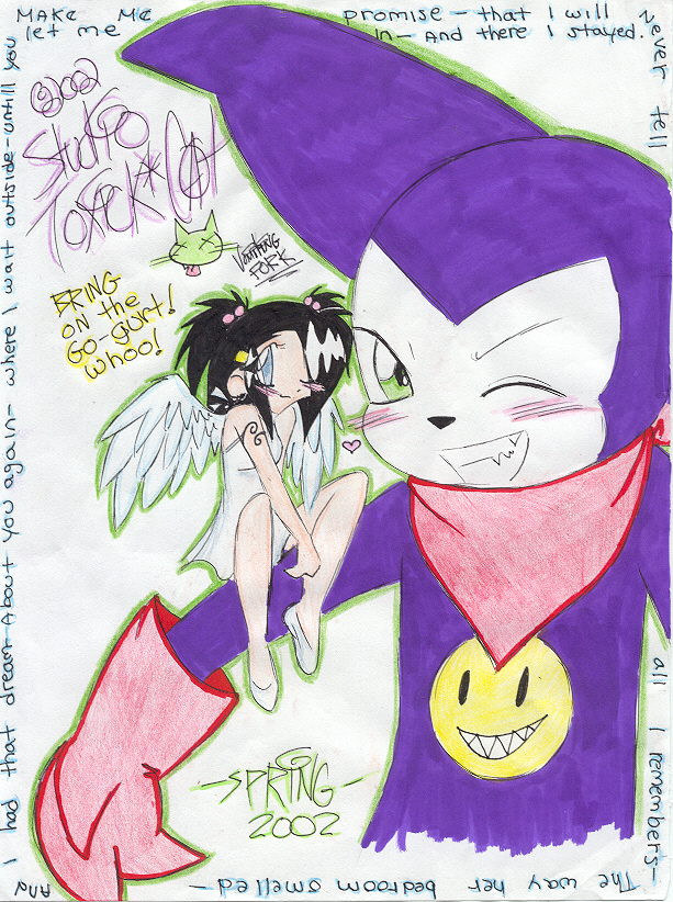 It was done by me, and only by me. (i am SO alone... *sniff*) It took me HOURS to just pencil in and ink all of this stuff, so if i find anoyone using it without my permission, they are in BIG ASS TROUBLE. And i MEAN it. This is FOR the fans, by a fan- and thats that.