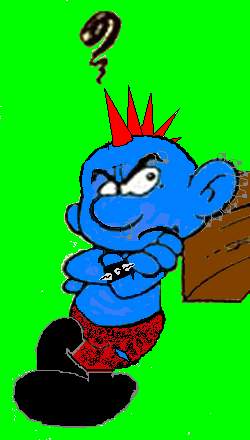 Here is smurfpunk he is waiting for his freind to come by with the beer.