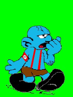 And here is naziskinheadsmurf. He just woke up and on his way to the beach to relax.