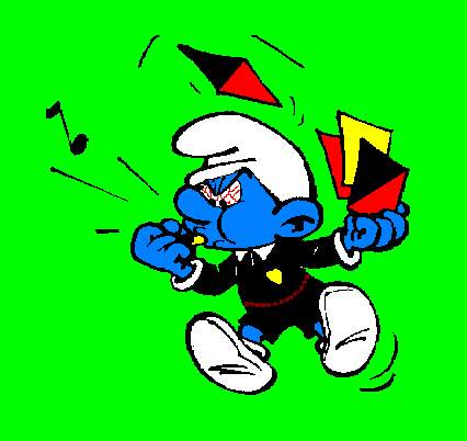 referesmurf see's it, he blows his whistle and scream's: "wait i want to join in on smashing that nazipig"
