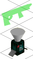 This boombox of the future contains an AM/FM tuner, a CD player, and 2 tape decks for recording from a CD, the radio, or another tape. Center section contains mainboard and 2 speakers, with 2 speakers protruding from each side. Developed by Metal SiMZ.