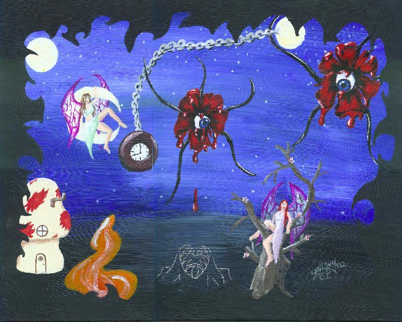 Thin and Thick acrylic on canvas board. 2002. A weak attempt I would say. Another school project as you can tell.