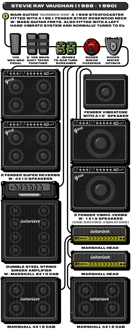 This is the actual strat. Stevie's #1. While he had some other strats, most were just stock vintage, except for 'butter', an all white model with lipstick pickups.