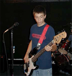 Equipment: Squier Affinity P-Bass, and his brothers bands amp(100 watts)...