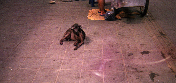 Bangkok has hordes of stray dogs wandering about, some of which are quite ragged (they don't put their strays to sleep). Their nickname is "soi dogs". "Soi" is slang for a smaller sub-street (alley).