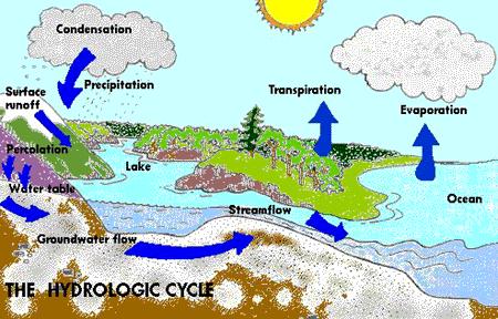 | Welcome to the wonderful world of the water cycle! Learn what happens to a drop of water as it goes through the stages of evaporation, condensation, and precipitation. |