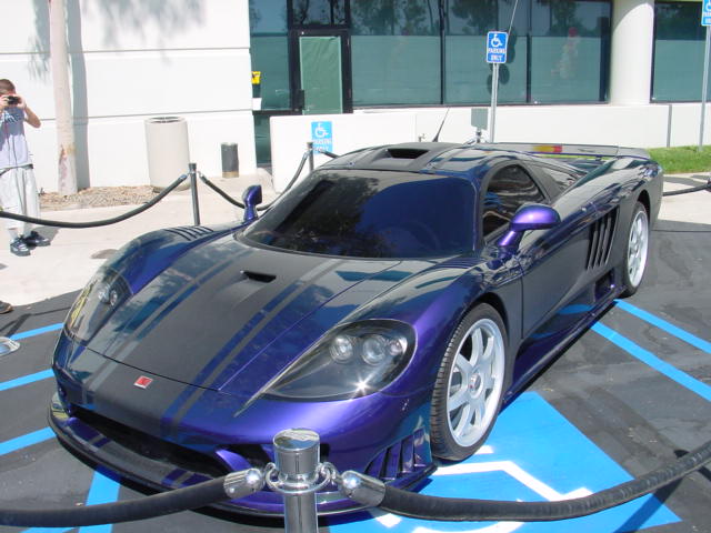 This is my favorite Saleen Product yet!! The whole chassis is connected with the carbon fiber bodywork. The weight distribution is 60/40. This means that 60% of the weight is in the rear of the car and 40% in the front. Being an American car it is of course is a V8. Seven liters of dry sumped V8! This subtle little powerplant is good for 550hp which launches the car to 60mph in less than four seconds and onwards to speeds in excess of 200mph. The interior features an unusual seating arrangement with the driver positioned slightly closer to the center of the car than the passenger. This is intended to improve the driver's ergonomics, and weight distribution. It also helps accommodate taller drivers. The interior is trimmed in leather and suede with aluminium and body colored detailing. Interior comforts include air-conditioning, electric windows, adjustable pedals and 6 CD changer. The S7 also features a live video rear view 'mirror' system with a camera mounted in the rear of the car feeding video images to a screen in the front. The car sports gull-wing doors (Lambo doors) which makes getting in and out in a small supermarket car parking spaces so much easier.
