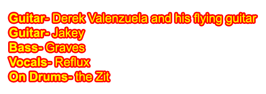 The origional line-up consisted of Victor on bass/vocals, David on the drums, Derek on guitar/vocals, and Diego on guitar/vocals. Diego caught syphillis from Derek and was forced to leave the band after a year. After trying out different singers including singer Terry; Victor, David, and Derek stumbled upon an old, drunken Mexican/Italian-American punk rocker named Antonio (Reflux) who joined the band in January of 2003. They had by then recruited another guitarist named Paul who also contracted an incurable form of gonorrhea from Derek and had to be quarantined in a special hospital in far away Guam. He was never seen again. Finally, Antonio's crazy girlfriend's brother Jakey (another bored white kid) joined the band in July, 2003 as lead guitar.