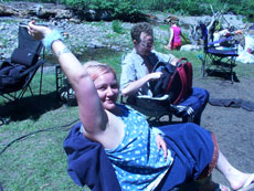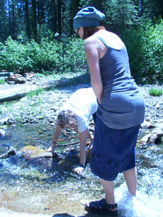 .....and now for Forest trying to cross the stream w/ out shoes....~=]