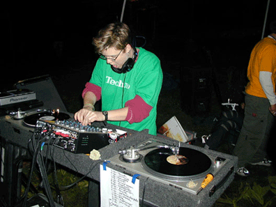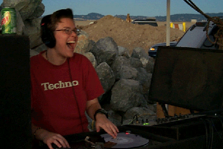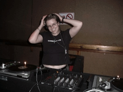 If you look closely, she's licking her headphones! What a weird girl. =]