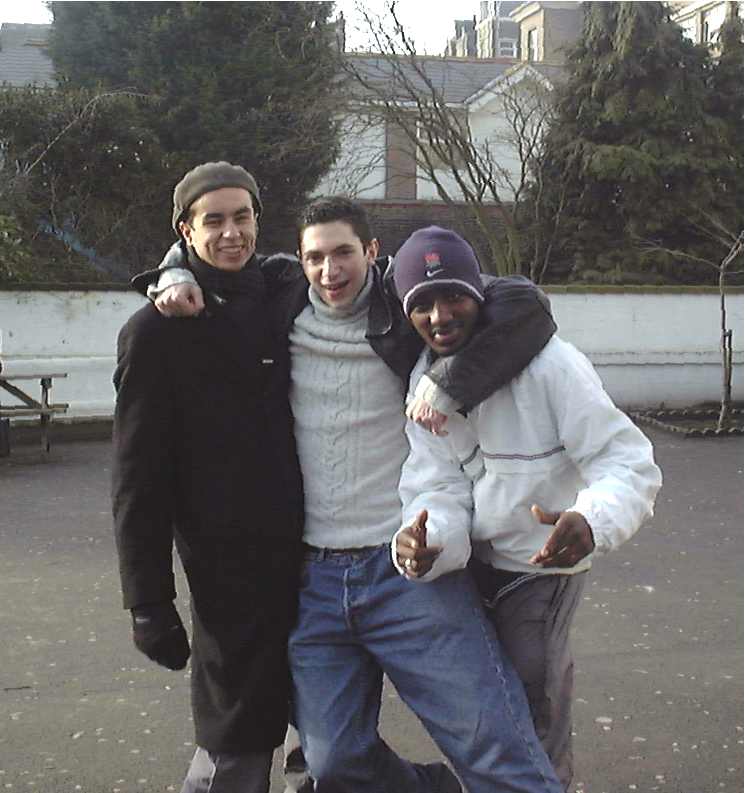 Karim: Holy shit Jimmy, you're gonna make me fall over! Get the fuck off you dolt!
