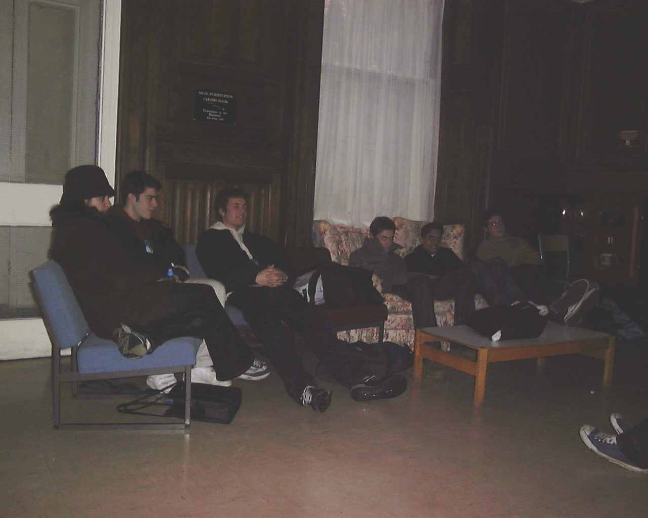 It's Dark, It's Dank, It's Cold, It's Small: it's The Common room; devoid of charm, personality, lacking in comfort or anything at all actually. Note the non-uniformity and subsequent clash between the different chairs, sofas, couches. Complete lack of colour coordination, someone better have gotten fired over that one. Is there an interior decorator about the place?