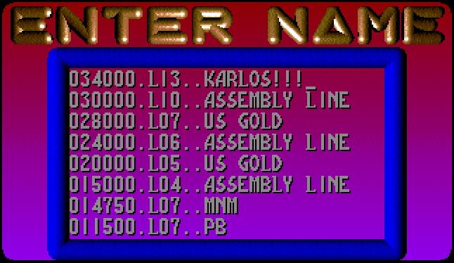 Screenshot of some highscores that don't actually save anyway! oh what a shame! anyways, KARLOS!!! is me claiming the number 1 spot of course! and MNM was also me 2nd from bottom and PB was my dad who likes this game quite a lot! he actually took his time to complete it back around 10 years ago now! :)