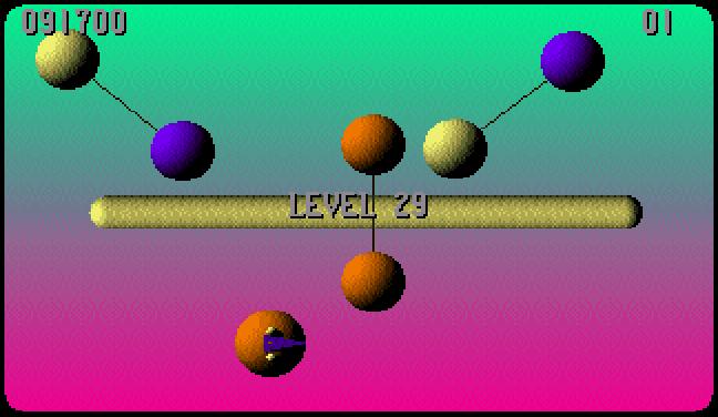 Most people having seen this page for a few seconds would have probably gone by now and be looking at some other game by the time you have read this far and I don't blame them either! Well the graphics aren't exactly great and nor is the gameplay but it can be alright if you give it a chance! It's one of those puzzle type games. The object of the game is to bump 2 of the same colloured spheres together to make them disapear but if you bump one into a different colour then u will create a small sphere of a whole new colour that can be killed off by rolling over it! either that or if you wait a little while then it will grow full size! as you can probably make out in the pic above, total mayhem has just occured from me messing up badly! :) so I just had to take a pic of it at the time! hee hee...