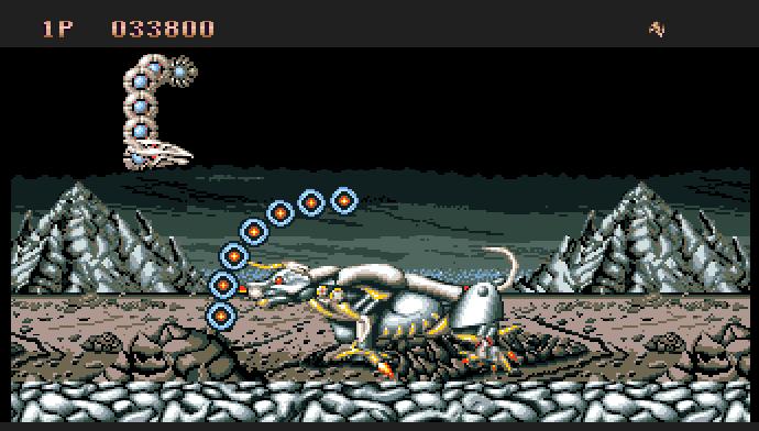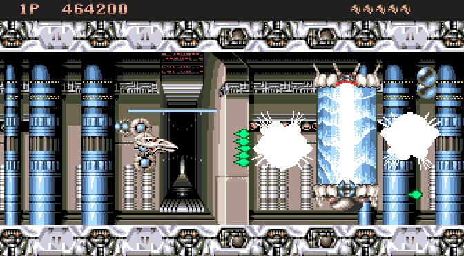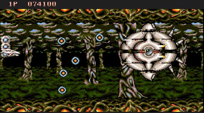 In game pic of this great classic shoot 'em up, show a battle with the first boss which is a mad robot cow!