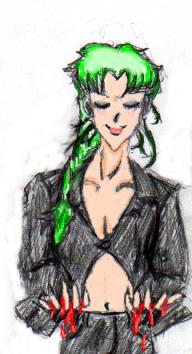 And here is his Evil Insano form...no actually, it's him in a horrible mood, after killing someone, feeling suicidal. Why the smile? *evil laughter* Well, I guess you'll never know, huh...whoa, it occurs to me, how many times has the poor child died? Ooh, my, I am cruel... But I enjoy killing him, evil critter that I am >:} hee hee!!!!! |