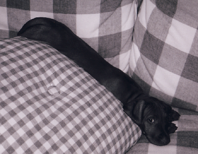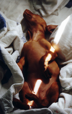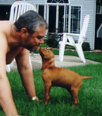 Hello everyone! My name is Indy! I was born on May 11th, 2002 from my mommie, Shana. I had 10 brothers and sisters - TEN sibling pups! Can you believe it?! I grew to be 8 weeks old and my new mom and dad came to pick me up. My new mom seemed so happy...and so did my new dad! We drove in the car for a long time and finally made it home. Mom gave me many kisses for being such a good girl. On that same day, I met my new grandpa and my half sister, Zee Zee Pazza.