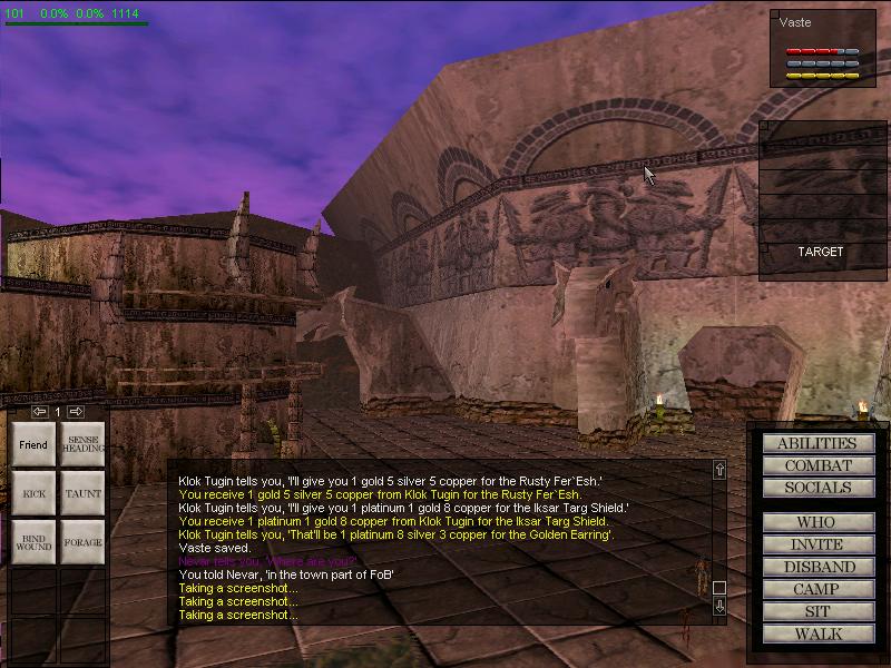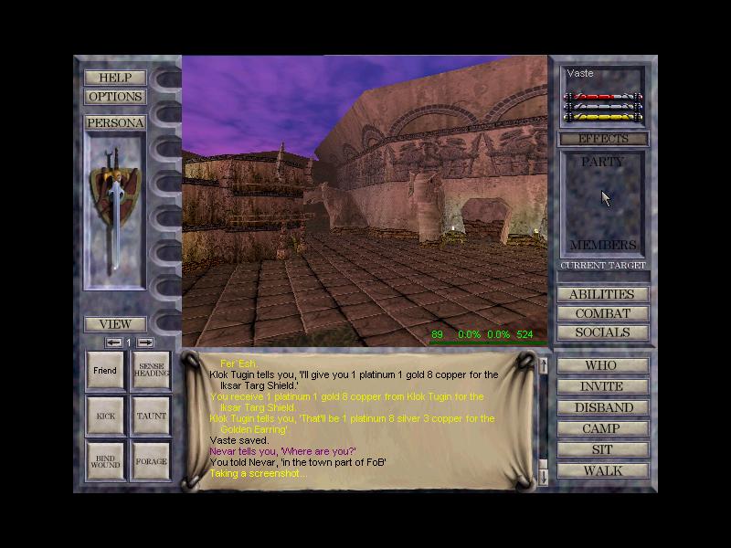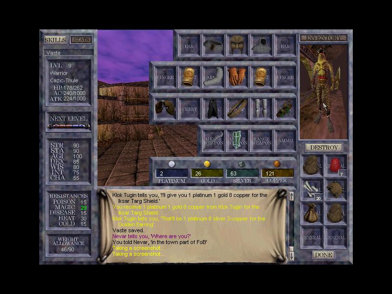 Here I have just posted pictures of what the Everquest gameplay looks like with all the menus and stuff on the screen. (Note: These pictures were taken in Field of Bone infront of the entrance to Cabilis.)