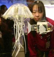 About the size of a large grapefruit, the robot jellyfish gently moves up and down its tank when the aquarium lights are turned on. Thanks to sensors, it doesn't touch the sides. Users say watching the jellyfish can be as hypnotic as staring at the real things. "Observing the gentle rhythms of the jellyfish has a 'healing' effect," Terumi Endo, a spokeswoman for the toymaker, told the London Times. "Research shows it is good for soothing nerves and alleviating stress." According to The Times, the jellyfish was a big hit with stressed-out workers who "spend hours staring into the glass tank that houses the creature."
