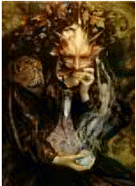 This vampiric Faerie would attach herself to one man, usually someone with a gift for the Arts in some way, and become his Muse. While inspired by his ardent mistress, he would create great works of Song and Ballad and lyrical Poetry, all in a few weeks time, burning himself out while under her tutelage. No other human could see her except the one she had chosen--a potent attraction, and a dangerous one. She was irresistably beautiful, weaving a spell of enchantment that bound her Lover to her with powerful charms. Once seduced by her, the mortal could not bear the touch of another woman, and would pine away for his Faerie love, ruined in body and soul.