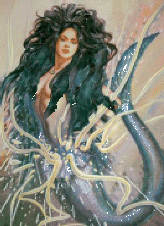 The Merrows are Irish faerie mermaids: gentle and very beautiful. They are a dreaded sight at sea, though, for their presence foretells the advent of great storms. The merrows often have great knowledge of the healing powers of herbs and plants, and can cure most any illness. Because of this, those who live by the ocean can ask a special boon of them for a sick child--they have a fondness for human children. Sometimes, however, if the child is a handsome male, the Merrows would consider the boy to be their own, and seduce him when him reached young manhood. The children of these matches, while slim and fair as their faerie mothers, often had scales covering the skin or fishes tails.
