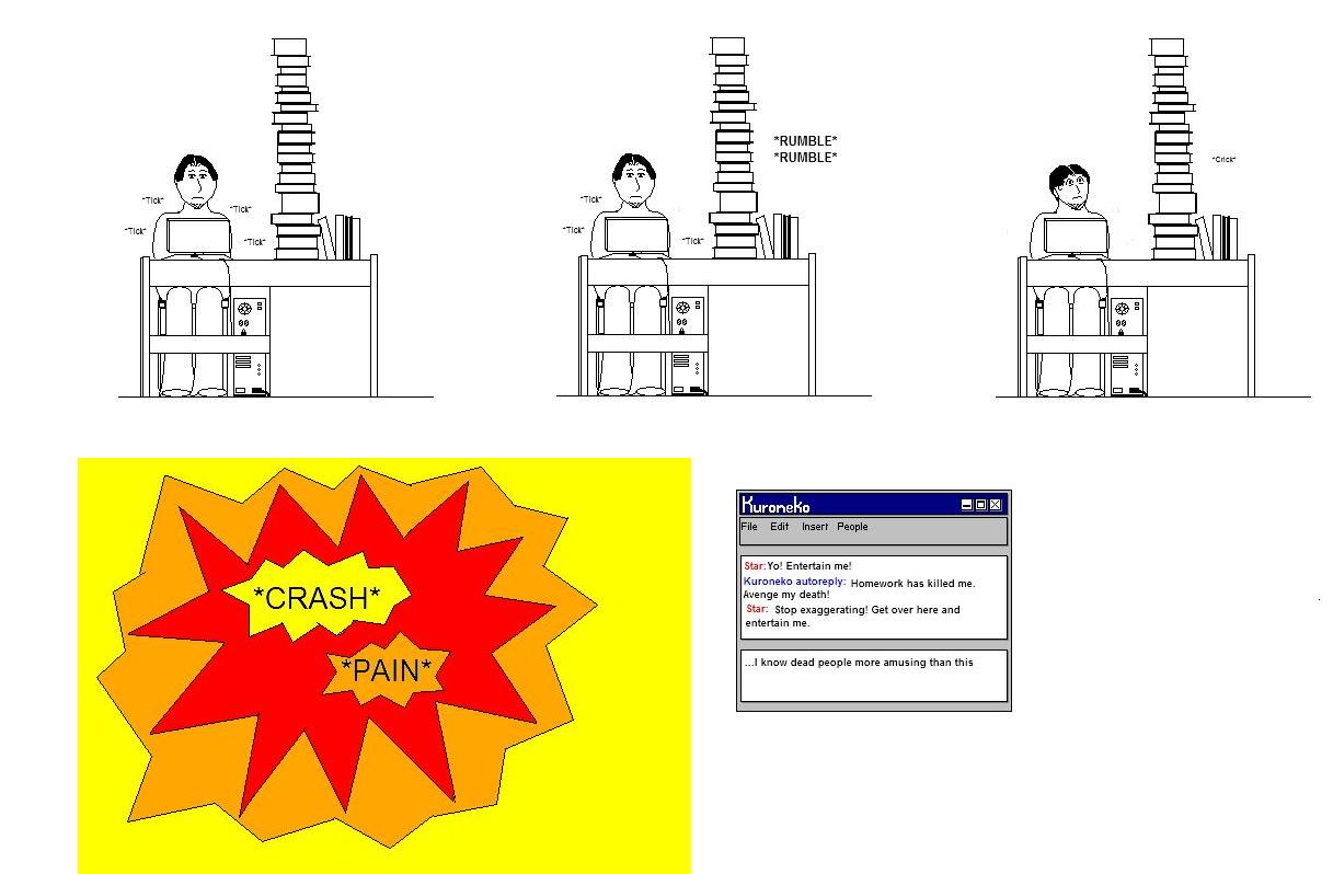 Ok, so here's a little something I put together on Saturday. Mostly cause I was bored and relaxing...of course after a while it wasn't so realxing. That's why there's no color...I might get around to it. It's also why each panel loads separately (I don't know how to get them together yet). It's my first try at this so give me a break.