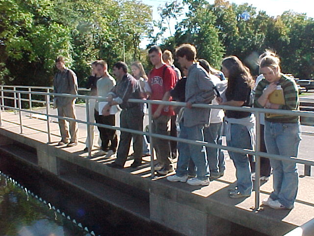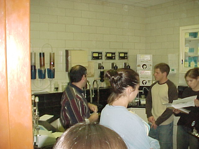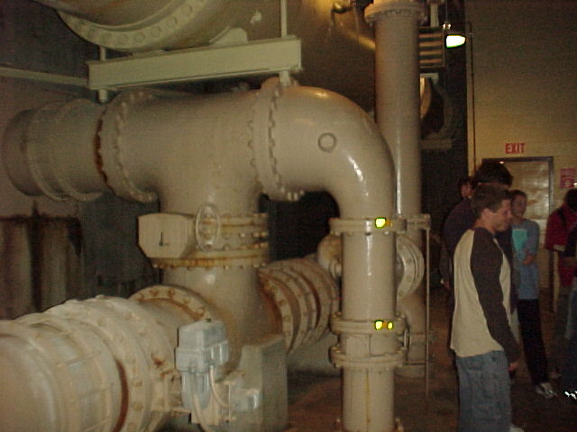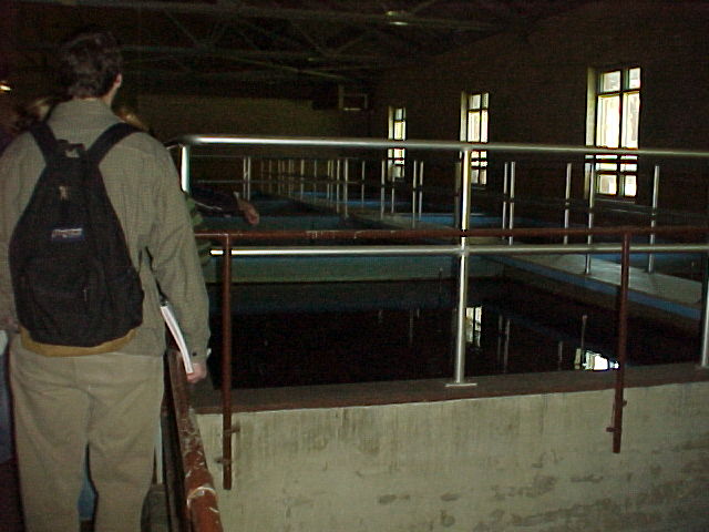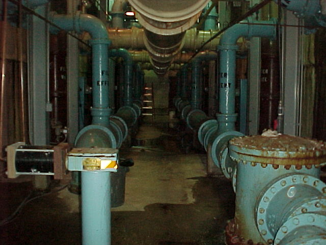 The filter galley has eight filters, which are all identical. The filters, as you can see in the picture on the left, utilize gravel and sand for the purpose of removing any remaining turbidity and sediment. The granular carbon is used here. About 1 million gallons per day pass through each filter.