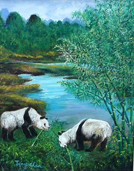 A beautiful painting of pandas eating and playing. Painted in acrylic on canvas 20" X 16"SORRY! THIS PAINTING WAS SOLD!