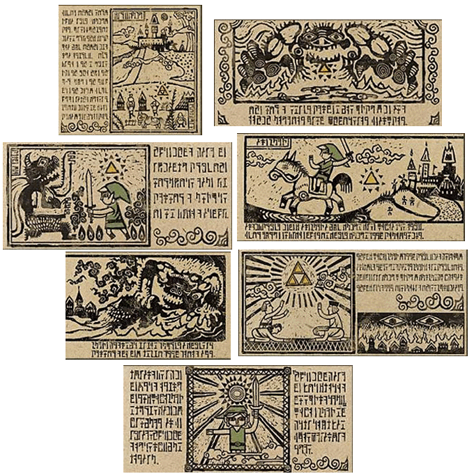 Ok, my Japanese is horrible at best, and my Ancient Hylian is even worse, but to the best of my knowledge the story is as follows: