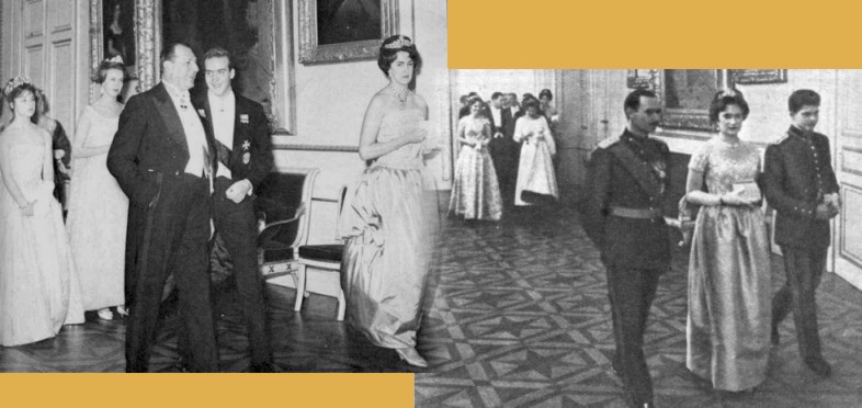 state banquet offered by the Government of the Kingdom in the Museum of the Cinquantenaire, but the grand parures of diamonds were displayed in the Palace of Brussels, on the 13th December 1960, the ball of the year.
