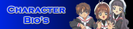 Age: 17 Extra: Julian is Tori's Best Friend! Lives w/ Grandparents. He is Usually always Hungary, if not Eating thinking about eating. lol. :) Other Characters: Yue Extra: Second Guardian of the Clow Cards, ruled by the Moon. Symbol is on the back of the Clow book! Tells who will become the Clow Card Master. Meilin Rae Extra: Transfer Student. Helps Li Search for the Clow Cards! Knows Martial Arts and Gymnastics. Has a Crush on Li! ^_^ Aiden Avalon Extra: Sakura's Father! Works at a University he is an archaeologist! Pretty busy guy but takes time for his kids Sakura and Tori. Natasha Avalon Extra: Natasha Is Sakura and Tori's Mother! She died when Sakura was very young. She visits her Family from time to time to check on them in Spirit! (Tori Can see her!) Layla Mackenzie Extra: The Math Teacher for Li and Sakura! Li doesn't trust her! Sakura deeply admires her. Layla is seen helping sakura mysteriously during capturing Clow Cards! Rita Extra: Sakura and Li's Classmate! She is Very Shy and doesn't talk really at all! Nikki Extra: In Sakura's and Li's Class. Is in Sakura's Cheerleading. Chelsea Extra: Is in Sakura's Cheerleading. Collects and Collects Stuffed animals.