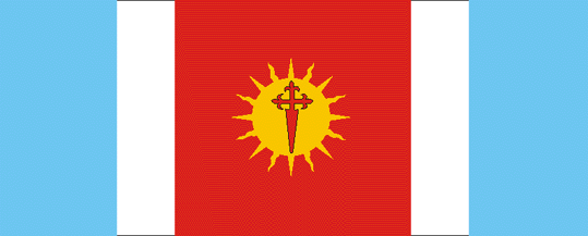 Dimensiones de la cruz espada: la espada vertical será de 1/4 del ancho de la bandera y la cruz horizontal sera de 1/8 de la misma.