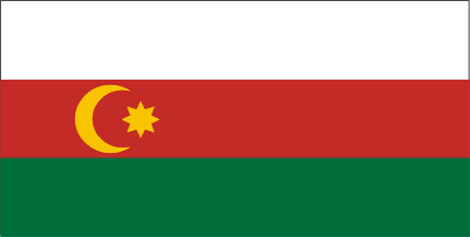 Bandera probablemente usada como regional por las autoridades o manifestantes de la region de Noukha, hacia 1990.