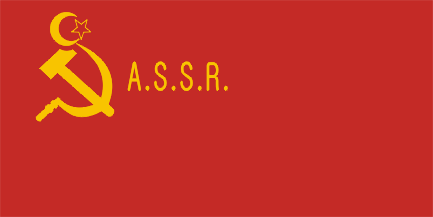En este tiempo se utilizó (¿oficialmente?) una nueva bandera roja con las iniciales y la hoz y el martillo y estrella siguiendo el modelo de la Republica matriz.