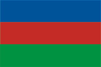El partido federalista una simple tricolor representando a las tres principales dinastias azeris: los Derbendis, los Mazyadidas y los Kesranidas.