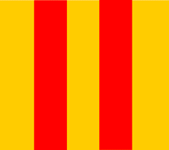 The three bars or pales (golden), began their popularity and diffusion in 1112 when Ramón Berenguer II the Great married Dolça of Provence and acquired this county and a vast inheritance in Occitany. The three golden pales or batons were then attributed to Barcelona, Besalú (that had passed to the Catalan crown the previous year 1111) and Provence. The existence of the three pales or batons is attested by the seals of Ramón Berenguer II. The study of seals and engravings in stone or metal would indicate that yellow was the main color, and red the background. Furthermore the yellow batons tend to be broader than the background .