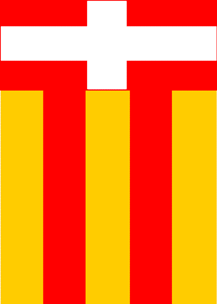 On 10 August 1218 king James I instituted in his capital, Barcelona, the Order of the Mercy and granted it the royal emblem: "three gold pales on a background of gules, surmonted by the silver cross of the Chapter, granted by the Bishop Berenguer de Palou (white cross on red background)