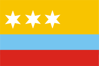 tres cuarteles : en el superior, en campo de gules, tres estrellas de plata, símbolo