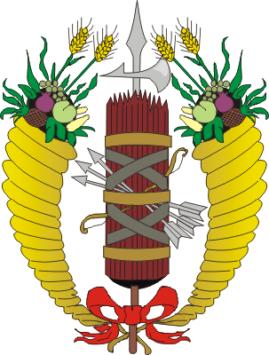 Finalmente el 6 de Octubre de 1821 se decretaba que la Republica de Colombia no usaria más las armas provisionales que quedaban sustituidas por un emblema nacional formado por dos cornucopias (imagen escaneada del articulo de Restrepo Uribe en Banderas 30). En esta epoca estaba dividida la republica no en tres sino en siete departamentos: Boyaca, Cauca, Cundinamarca, Magdalena, Orinoco, Venezuela y Zulia, con otros dos departamentos nominales (Panama y Quito) en manos realistas. Panama se integró en Noviembre de 1821 y Quito en Mayo de 1822.
