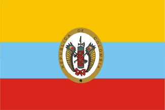 1859-1862 Dividido el país con una estructura federalista, la guerra se inició en el Estado del Cauca contra el gobierno central. T.C. de Mosquera, líder de este levantamiento, buscaba acrecentar el poder del Estado del Cauca, el más grande del país. Su victoria lo llevó a la presidencia de la Confederación para el período 1860-1863. Una vez en el poder, continuó con la desamortización de los bienes de la Iglesia y proclamó la Constitución de Rionegro, que acrecentó el poder soberano de los Estados y redujo el del gobierno central. Fue la única guerra civil que pudo derrocar al gobierno establecido. El 18 de Julio de 1861 el General Cipriano Mosquera tomó Bogota y un Congreso provisional le instaló como presidente de los Estados Unidos de Nueva Granada. El presidente alteró por decreto la bandera nacional e insignia mercante el 26 de Julio de 1861 (Flagmaster). Restrepo Uribe opina que pudo tratarse solo de un cambio de la insignia mercante ya que el decreto menciona el nuevo "pabellon", o bien que se trataba de refundir ambas banderas e una unica. La reconstrucción de la bandera es distinta en Flagmaster y Restrepo Uribe (en Banderas). El numero de puntas de las estrellas no es citado en la ley: Flagmaster la reconstruye con estrellas de 5 puntas y Restrepo con estrellas de 8 puntas.