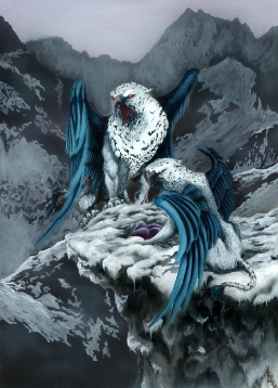 Griffens, their cousins of the Griffons but are at war because they both think they are the supperior "griffen" race but when they started the war they became very vunerable to the Dragons, their mortal enemy's so the Griffons seeked refuge with the Gants and Griffens with the Dwarfves |