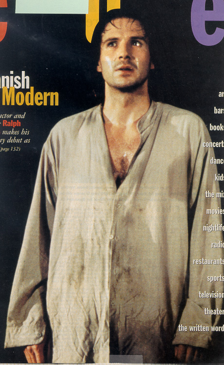 Director, Jonathan Kent; Set, Peter J. Davison; Costumes, James Acheson; Lighting, Mark Henderson; Music, Jonathan Dove; Sound, John A. Leonard; Fights, William Hobbs; Production Supervisor, Aurora Productions; Stage Managers, Anne Keefe, Frank Lombardi; Presented by Dodger Productions, Roger Berlind, Endemol Theatre Productions, Jujamcyn Theatres, Kardana Productions, Adrian Bryan-Brown/Bob Fennell Previewed from Friday, April 14 Opened in the Belasco Theatre on Tuesday, May 2, 1995 Closed July 22, 1995 after 91 performances and 19 previews. Winner of Tony Award for Best Actor in a Play (Ralph Fiennes) ~ Related Pictures ~ |
