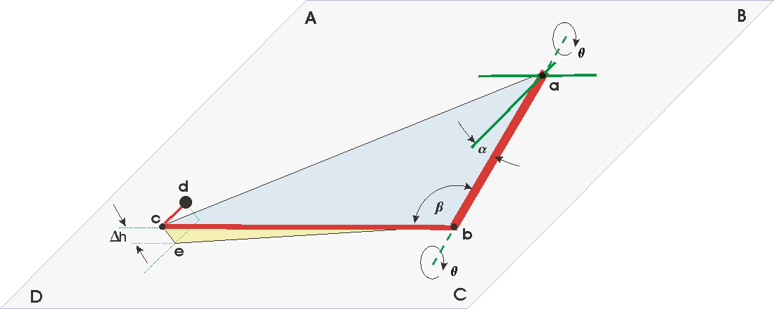 For the first portion of down swing, segment ab (lead arm) and segment bc (club) remain in the plane ABCD. ab stays constrained in the plane ABCD, whilst bc can move out of this plane. The